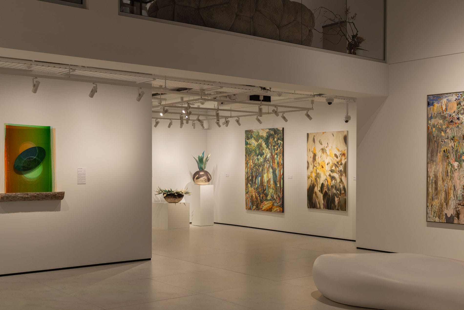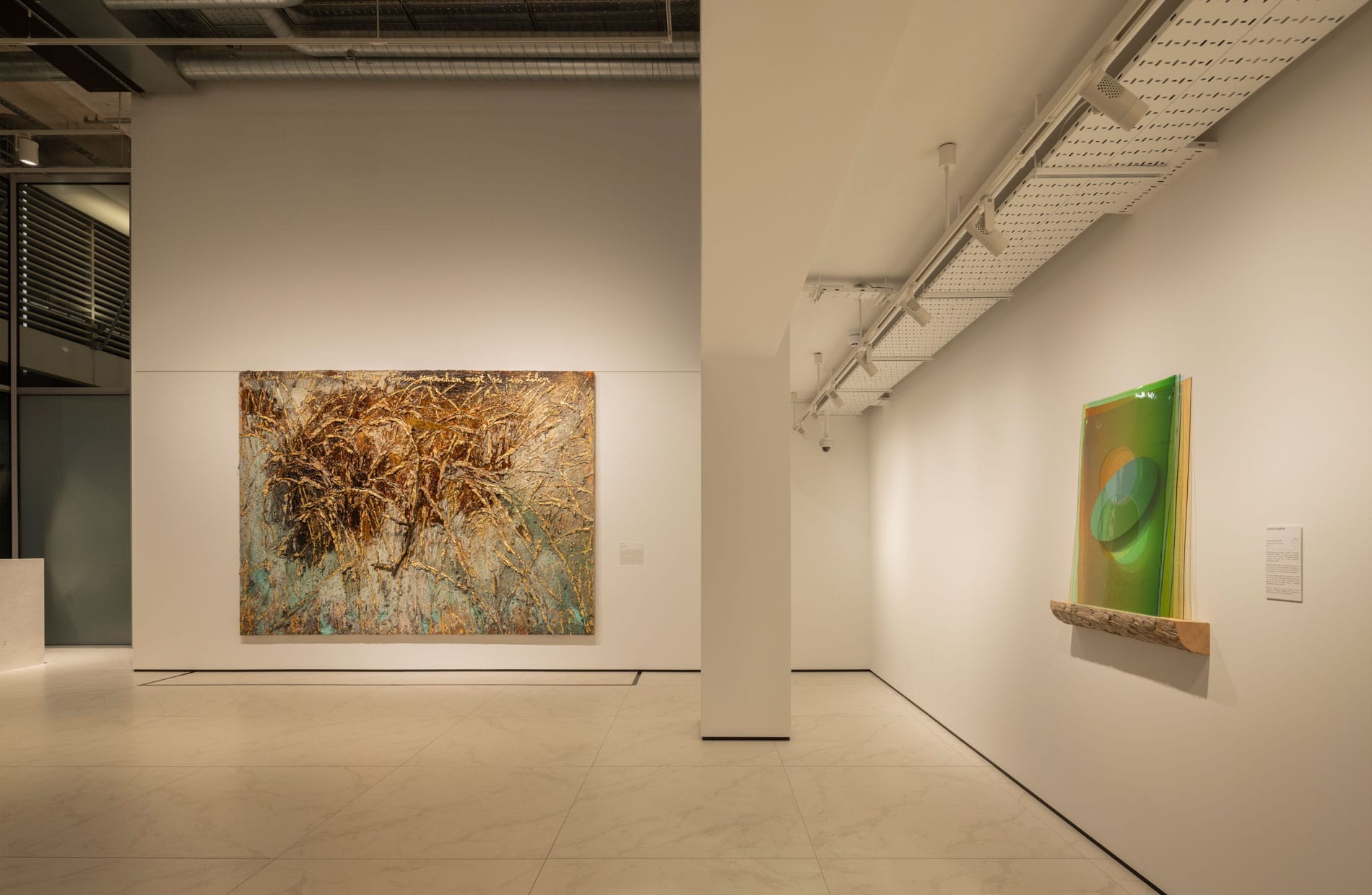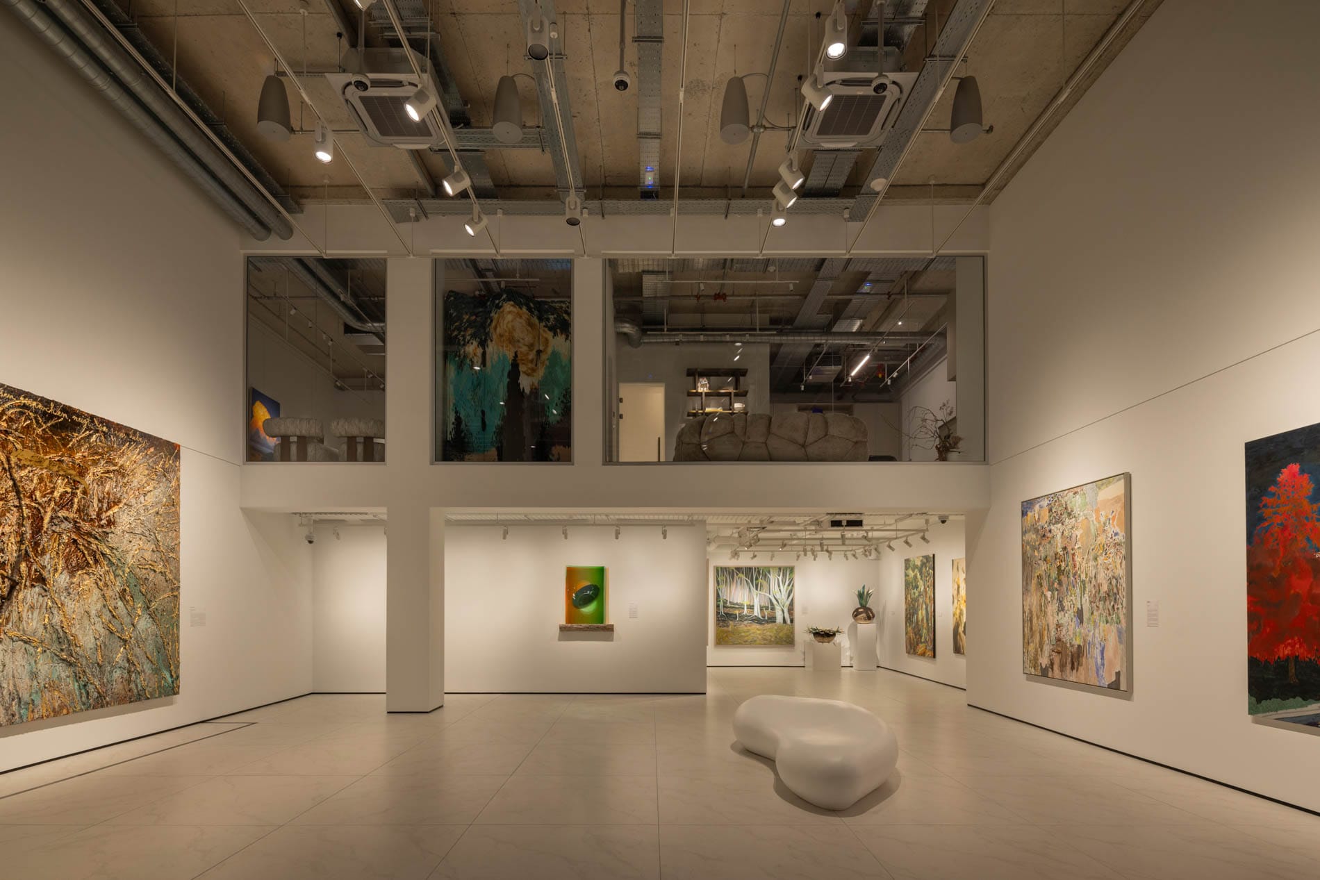The main double-height exhibition space is lit using a suspended track system. Wall washing and accent lighting allow artworks to be evenly illuminated while providing focused highlights that enhance texture and materiality. An adjoining gallery space continues the same lighting language at a more intimate scale.