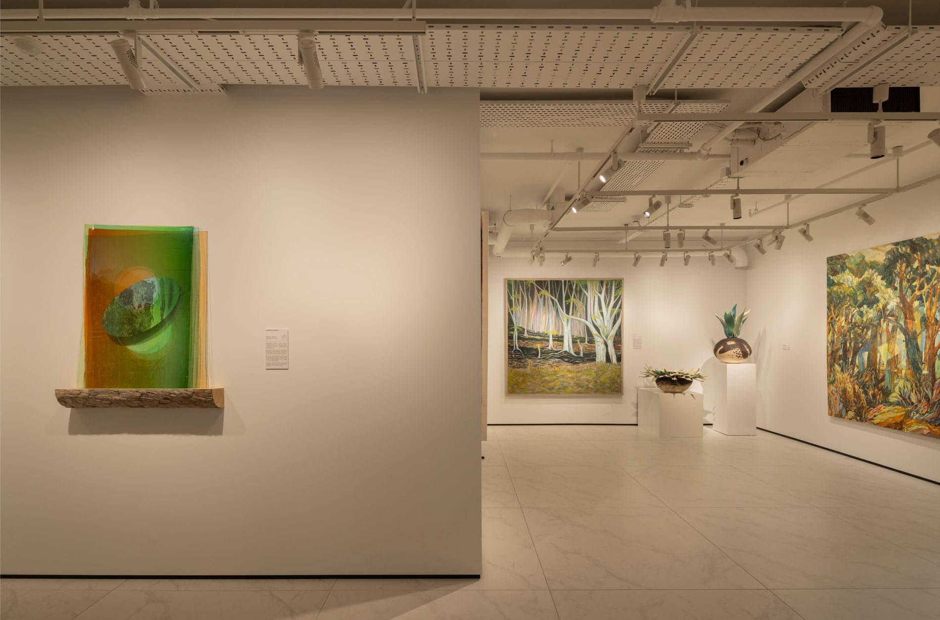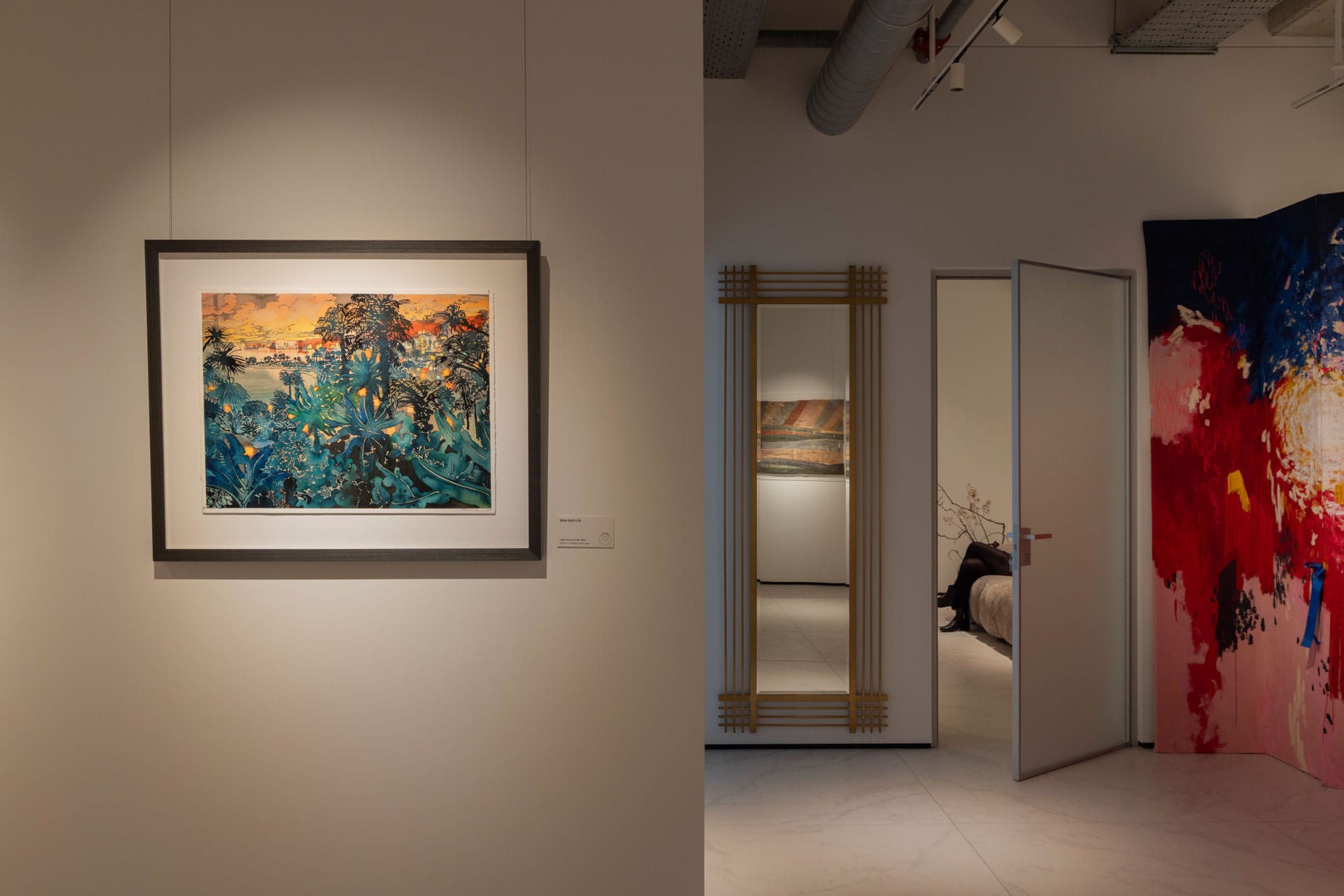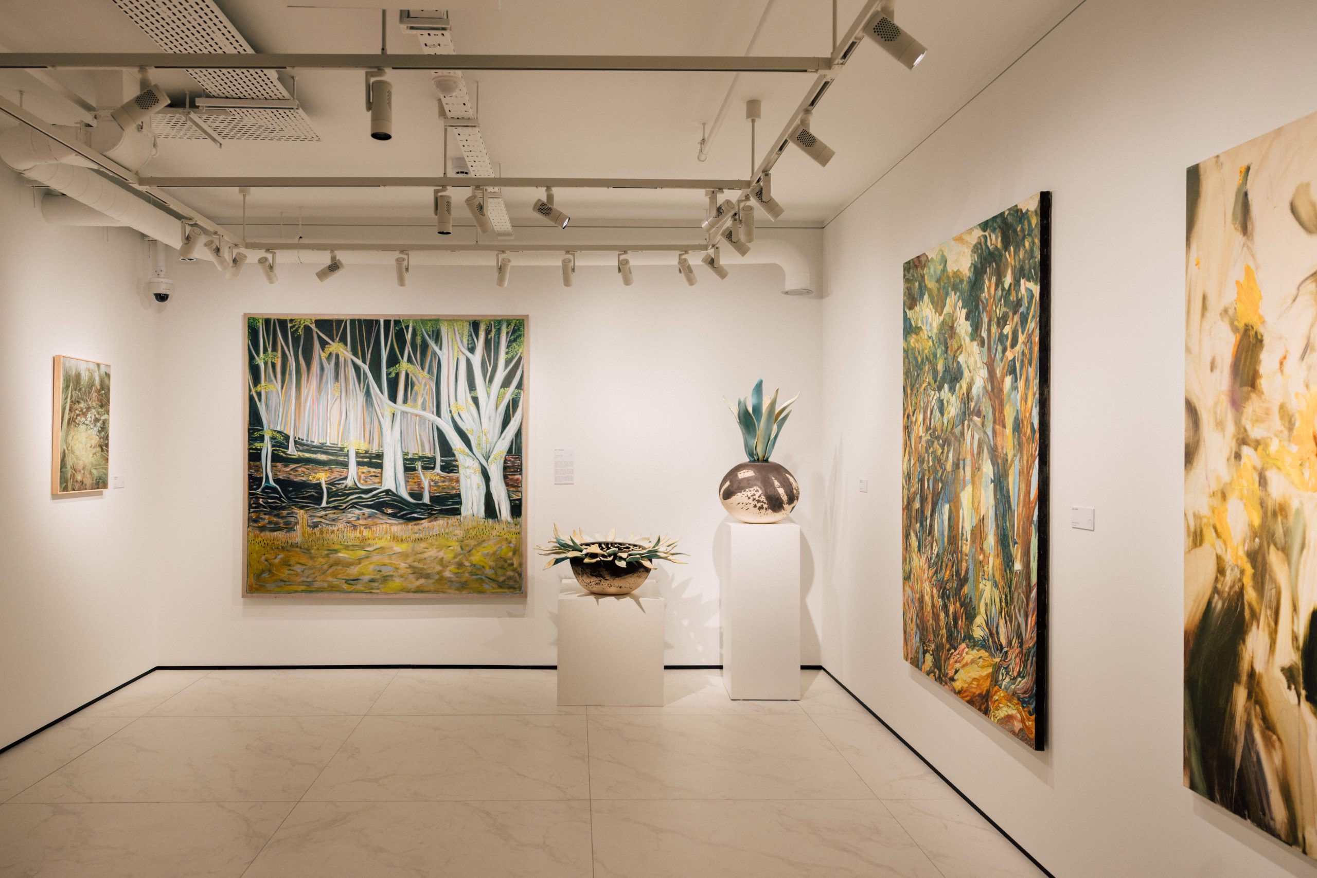 The main double-height exhibition space is lit using a suspended track system. Wall washing and accent lighting allow artworks to be evenly illuminated while providing focused highlights that enhance texture and materiality. An adjoining gallery space continues the same lighting language at a more intimate scale.